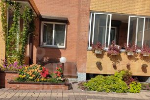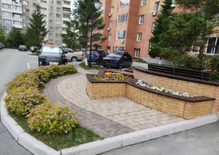 Ухоженный подъезд. Придомовая территория огорожена, эффектно благоустроена по современному ландшафтному дизайну.