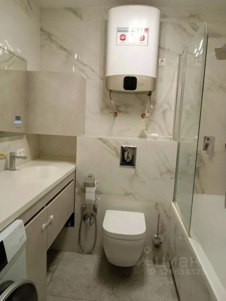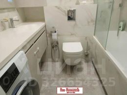 Элегантная качественная отделка в благородных молочно-бежевых тонах формирует атмосферу изысканного комфорта. Санузел облицован стильным кафелем и оборудован премиальной сантехникой. В кухне-столовой установлена элитная мебель и первоклассная техника.