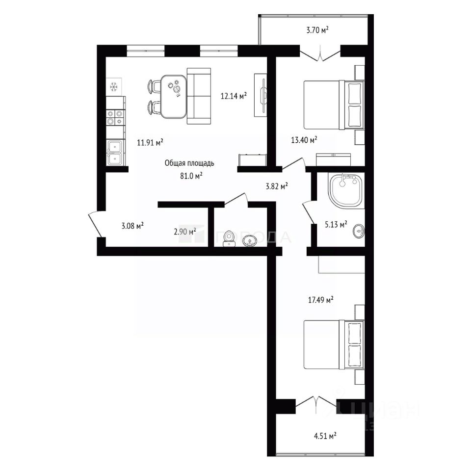 • Общая площадь: 81 кв. м.