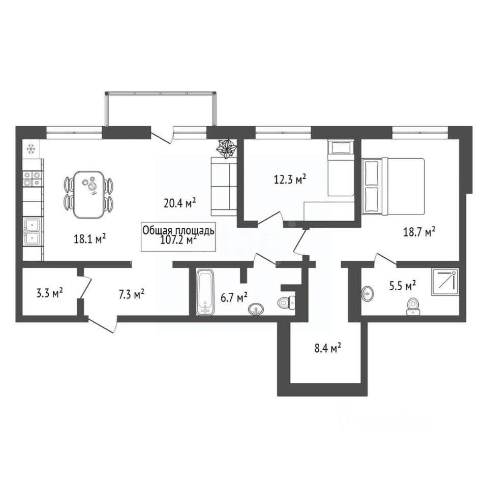Два санузла: 5.5 и 6.7 кв м