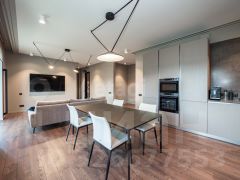 В квартире выполнен ремонт по индивидуальному дизайн-проекту с использованием высококачественных и дорогих отделочных материалов известных Европейских брендов.