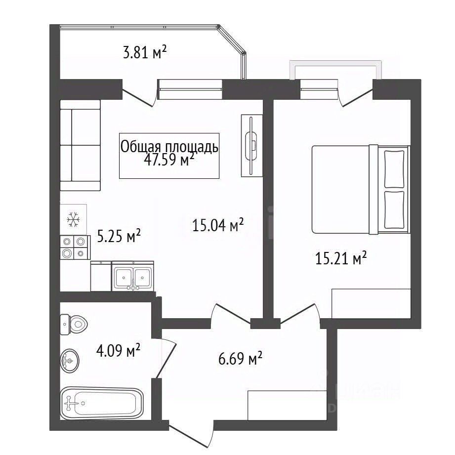О квартире: Площадь по егрн: 47.59, с учетом лоджии (52 кв.м), высота потолков 3 м.