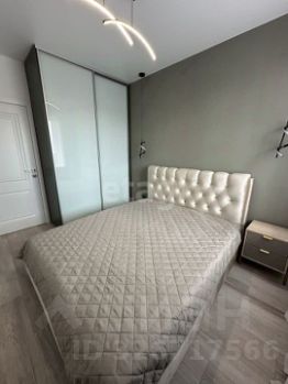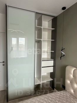 В спальной комнате установлена двухспальная кровать с подъемным механизмом и качественным матрасом, установлен вместительный гардеробный шкаф, выведено дизайнерское освещение.