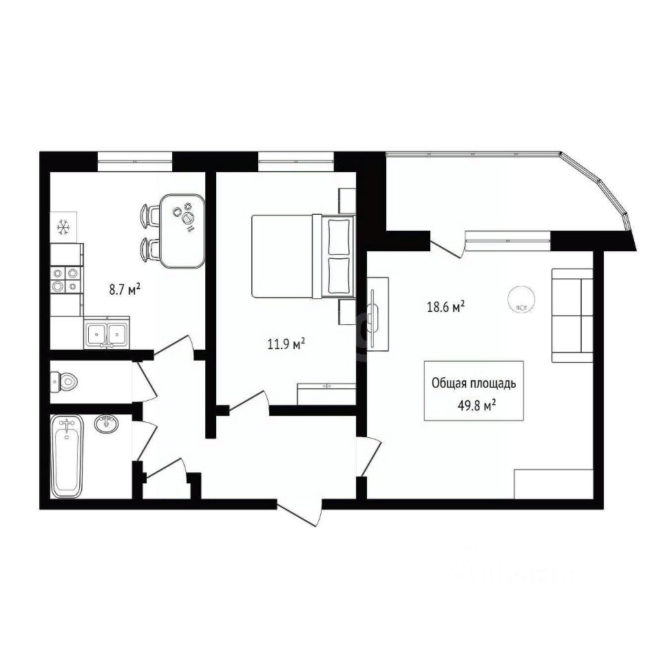 Планировка включает изолированные комнаты жилой площадью 30 кв. м, кухню в 9 кв. м, раздельный санузел и лоджию 3 кв. м. Окна выходят во двор, что гарантирует спокойную обстановку и хорошее естественное освещение. Квартира предлагается без ремонта, предоставляя новому владельцу полную свободу для реализации любого дизайн-проекта.