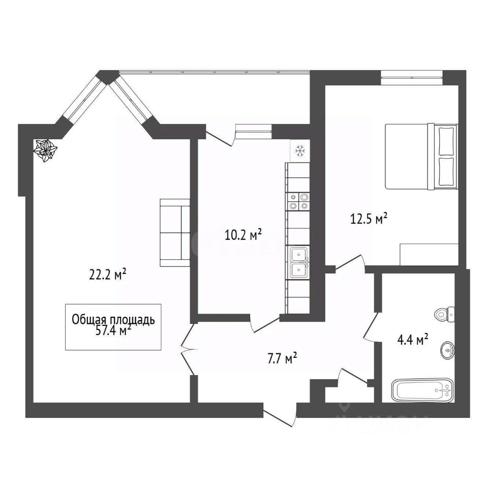 Продается 2-комнатная квартира общей площадью 57,4 кв. м. на шестом этаже 10-ти этажного кирпичного дома современной постройки.