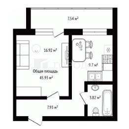 Площадь: 45,93 м² (с лоджией)