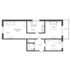- жилая зона 56,52 кв. м;