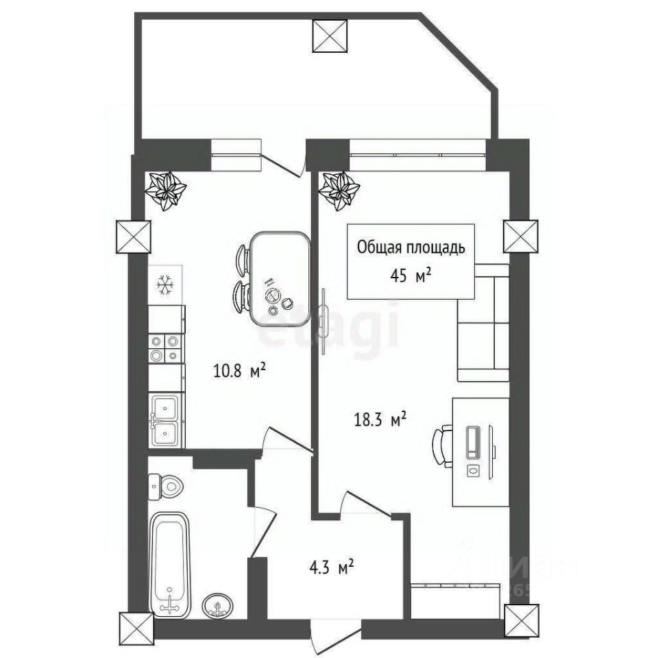 Большая и просторная лоджия предлагает отличное место для релаксации и проведения времени на свежем воздухе. Удобная транспортная развязка - всего 2 минуты до ближайшей остановки и всего две остановки до станции метро "Заельцовская". Рядом с домом вы найдете все необходимые удобства - ясли и детский сад, школу, спортивные секции для детей, а также фитнес-центр для взрослых.
