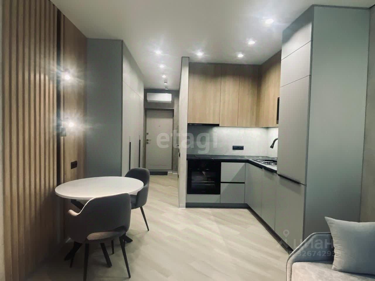 Квартира оснащена мебелью и встроенной техникой: холодильник, посудомоечная машина, микроволновая печь, варочная плита, духовой шкаф, вытяжка, фильтр очистки воды. Также есть кондиционер.