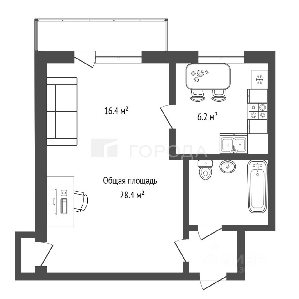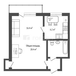 Продаётся уютная однокомнатная квартира площадью 28,4 кв. м на Народной улице, 36.