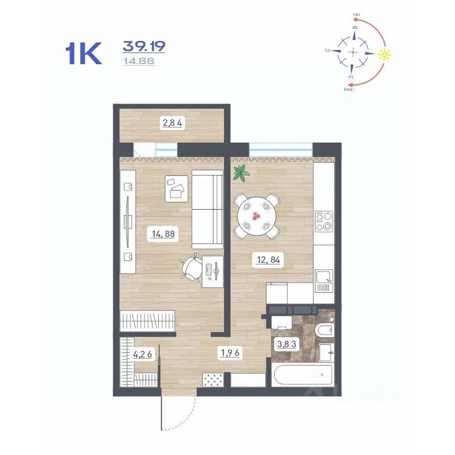 Продаётся 1-комнатная квартира в сданном доме (Дом 10), срок сдачи: IV-кв. 2025, общей площадью 39.19 кв.м., на 17 этаже. Расположение, транспортная доступность