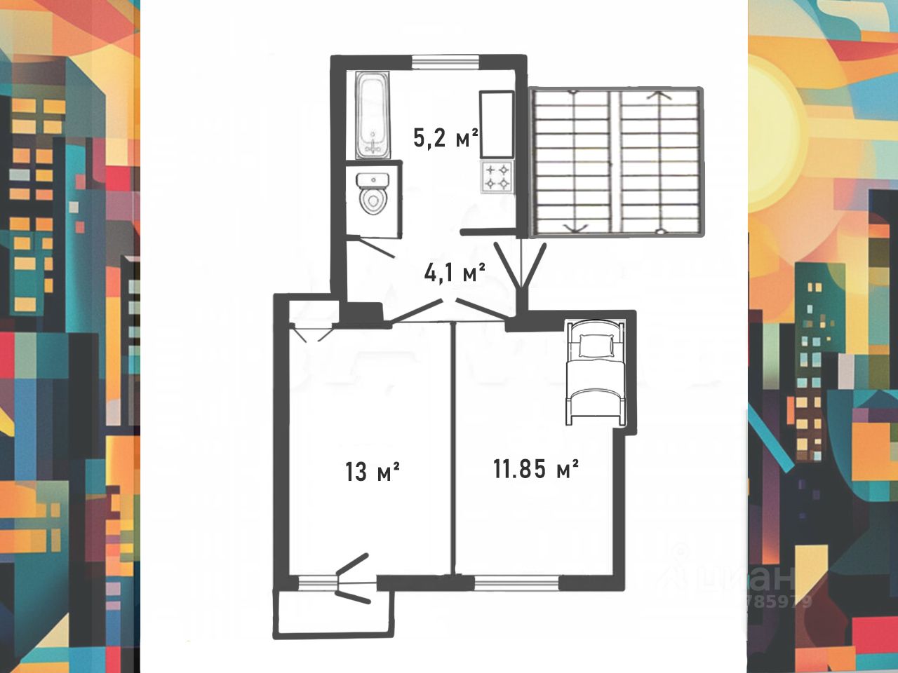 2025- комната со шкафом купе (11,8 м²);