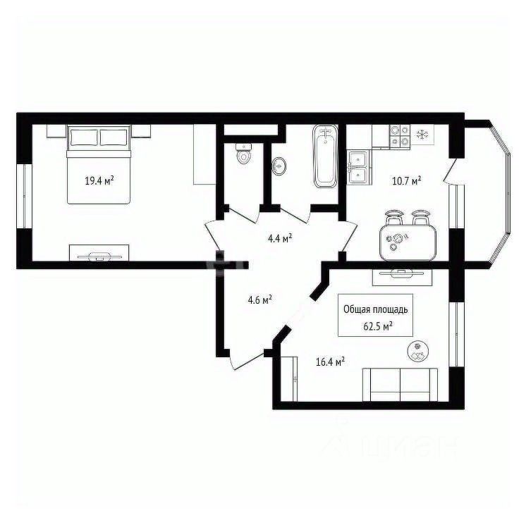 Общая площадь: 62 м²