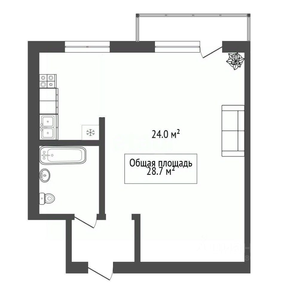 28,7 м²
