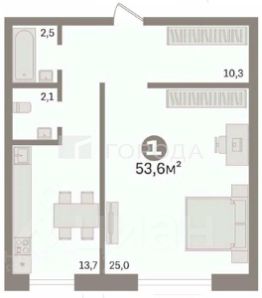 Общая площадь квартиры составляет 53,9 кв. м, жилая — 25 кв. м, площадь кухни — 13,7 кв. м. Окна выходят во двор. В квартире тепло и уютно.