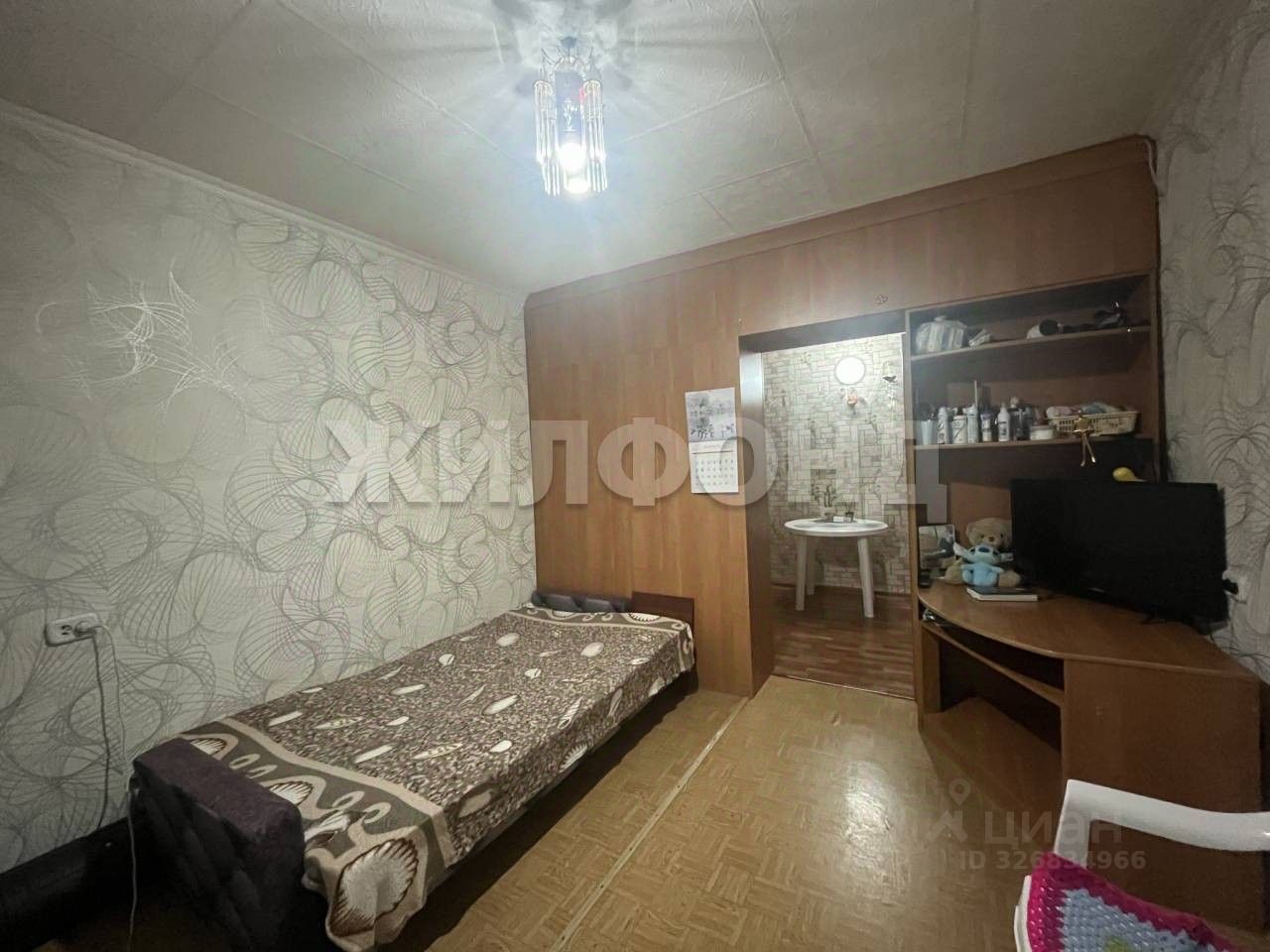 Комната укомплектована мебелью и бытовой техникой. Разделена на кухонную зону и спальню.