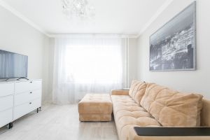 В квартире выполнен хороший ремонт. Установлена хорошая входная дверь. Планировка включает изолированную комнату и просторную кухню, отделанные с применением качественных материалов в нейтральной современной стилистике. Квартира теплая, очень чистый подъезд, соседи хорошие.