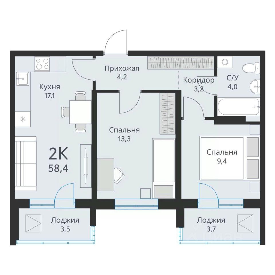 Продаётся 2-комнатная квартира в строящемся доме (Дом 2), срок сдачи: II-кв. 2026, общей площадью 58.4 кв.м., на 6 этаже. ЖК "Свои Люди" - жилой комплекс, где все "свои". Пример того, каким должно быть жилье сточки зрения комфорта.