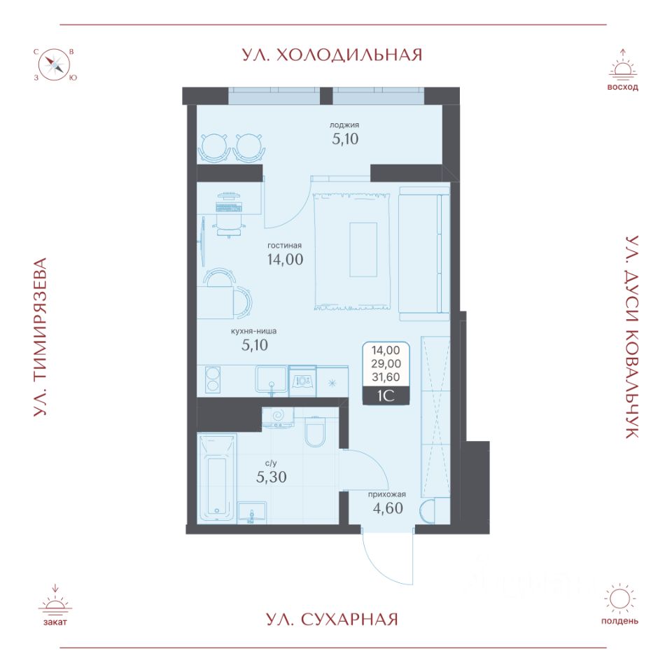 Общая площадь31,6 м²