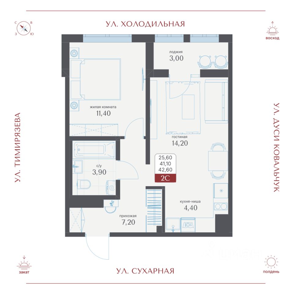 Общая площадь42,6 м²