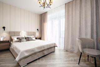 - Много естественного света: в гостиной 2 окна, в спальне - панорамное остекление в пол
