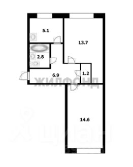 Общая площадь - 44,3 м2, жилая - 28,3 м2, кухня - 5,1 м2.