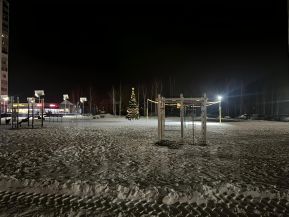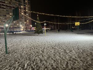 Выход из подъезда в 2 стороны, во дворе большая детская площадка, спортплощадка, хоккейная короба с освещением, огромная парковка. На этаже хорошие соседи - абсолютно все приличные люди.