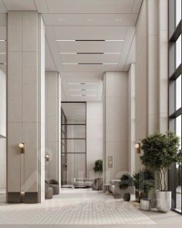 Дом начинается с холла. В "Активе" сквозное лобби — во двор с улицы можно пройти напрямую. Интерьер лобби перекликается с внешним обликом зданий — спокойный, минималистичный, благородный. Сдержанный декор и приятное освещение создают атмосферу безмятежности и комфорта. Благодаря окнам в пол лобби кажется еще больше. Это легкое пространство, где много естественного света, которое стирает грани между холлом и выходом во двор.