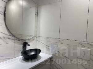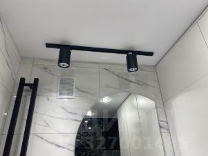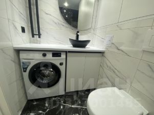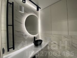 В ванной комнате керамогранит, вся сантехника, тропический душ с отдельным душем, гигиенический кран, зеркало с подсветкой, мебель для ванной, шкаф, водонагреватель, стиральная машина.