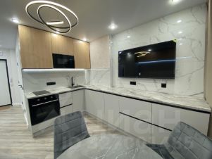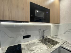 В гостиной- кухне установлен гарнитур со встроенной бытовой техникой: холодильник , варочная поверхность, вытяжка, духовой шкаф , посудомоечная машина, микроволновая печь- сделают приятным пребывание на кухне, полноразмерный диван со спальным местом 2*1,60, стол, 2 мягких стула. телевизор 4k , большой телевизор, диагональ 55.