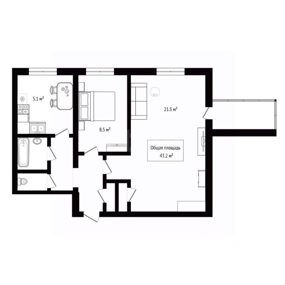 43,2 м²