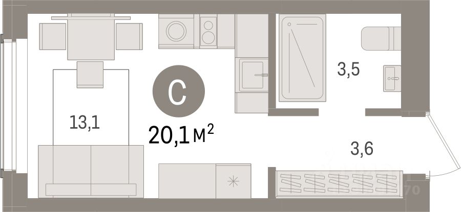 Студия в квартале Авиатор. Особенности планировки: предчистовая отделка.