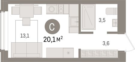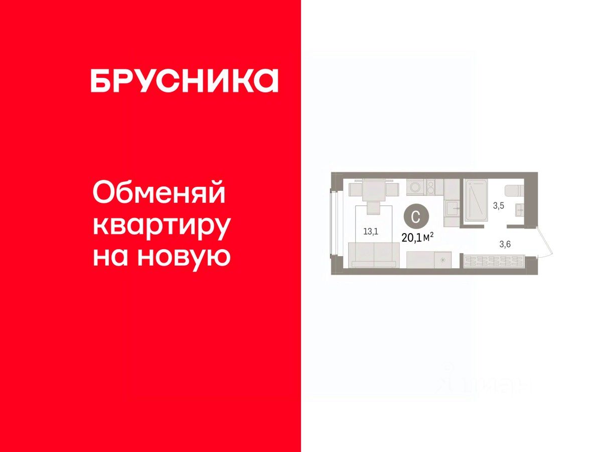 Просторная однокомнатная студия с предчистовой отделкой в Квартал "Авиатор" на 2 этаже. Общая площадь: 20.13 кв.м. Высота потолков 2.82 м.