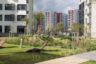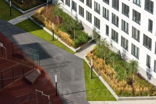 Первые этажи вдоль Мочищенского шоссе и улицы Аэропорт мы отдали под полезные сервисы и магазины. Активный фронт позволил интегрировать квартал в городской контекст. На территории "Авиатора" расположен многофункциональный спортивный комплекс с открытым амфитеатром, который станет центром притяжения всего района.