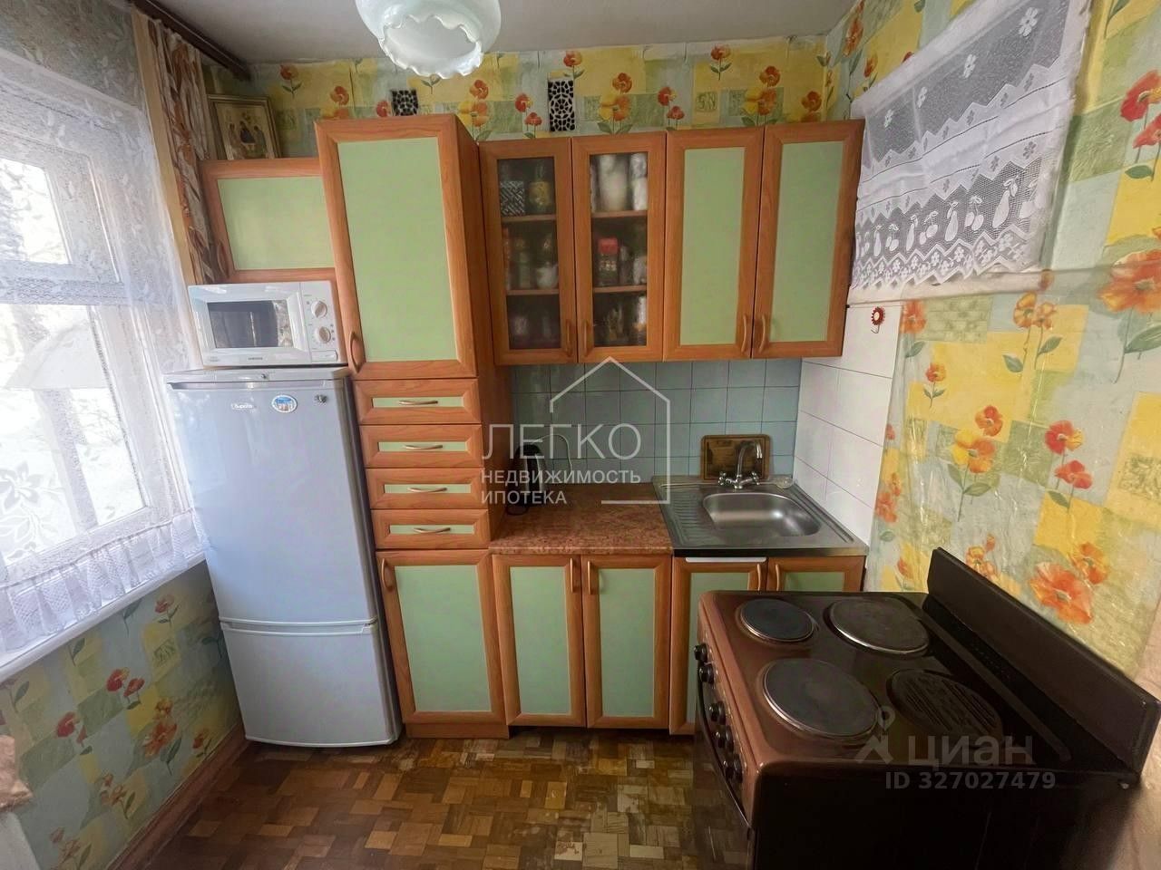 Достаточно высокий первый этаж. Окна на 2 стороны - на дворовую территорию. Тихий и спокойный двор.