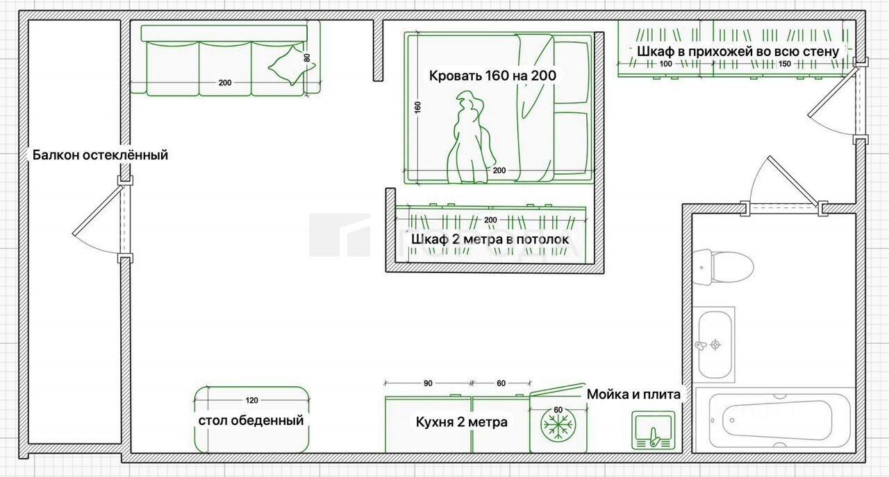 • Полноценная кухонная зона 3,5 м² — готовьте с удовольствием