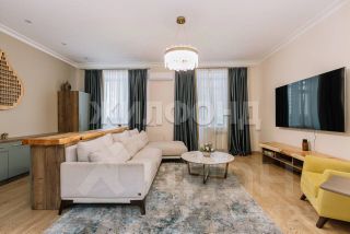 Современная и уютная квартира с ремонтом, мебелью и техникой, общей площадью 146.7 м2 (это без учета площади лоджии). Очень грамотная и функциональная планировка, все комнаты изолированные, окна выходят на две стороны. Кухня-гостиная - 25.2м2, очень светлая и просторная. Спальня-19.8м2 и две детские комнаты(15.9 и 12.1м2). Два санузла (есть ванна и душевая), постирочная с сушильной и стиральной машинами, большое количество мест хранения, просторная остекленная лоджия. В кухне-гостиной и спальне установлены кондиционеры. Высота потолков -3 метра.