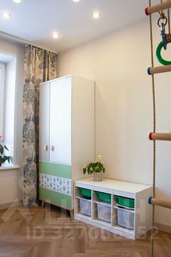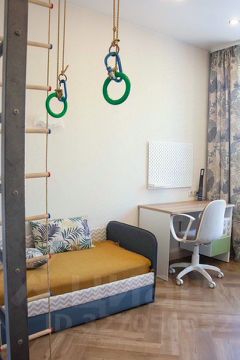 В третьей спальне: кровать с удобным матрасом для ребенка 8-10 лет, спортивная стенка, письменный стол для учебы, шкаф;