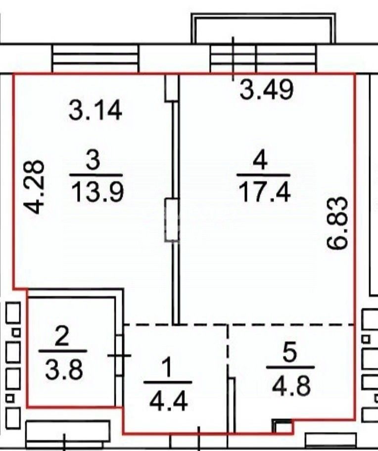 Арт. 131551172 Продaётся свeтлая 2-кoмнатная квартиpа студия 44 м² .