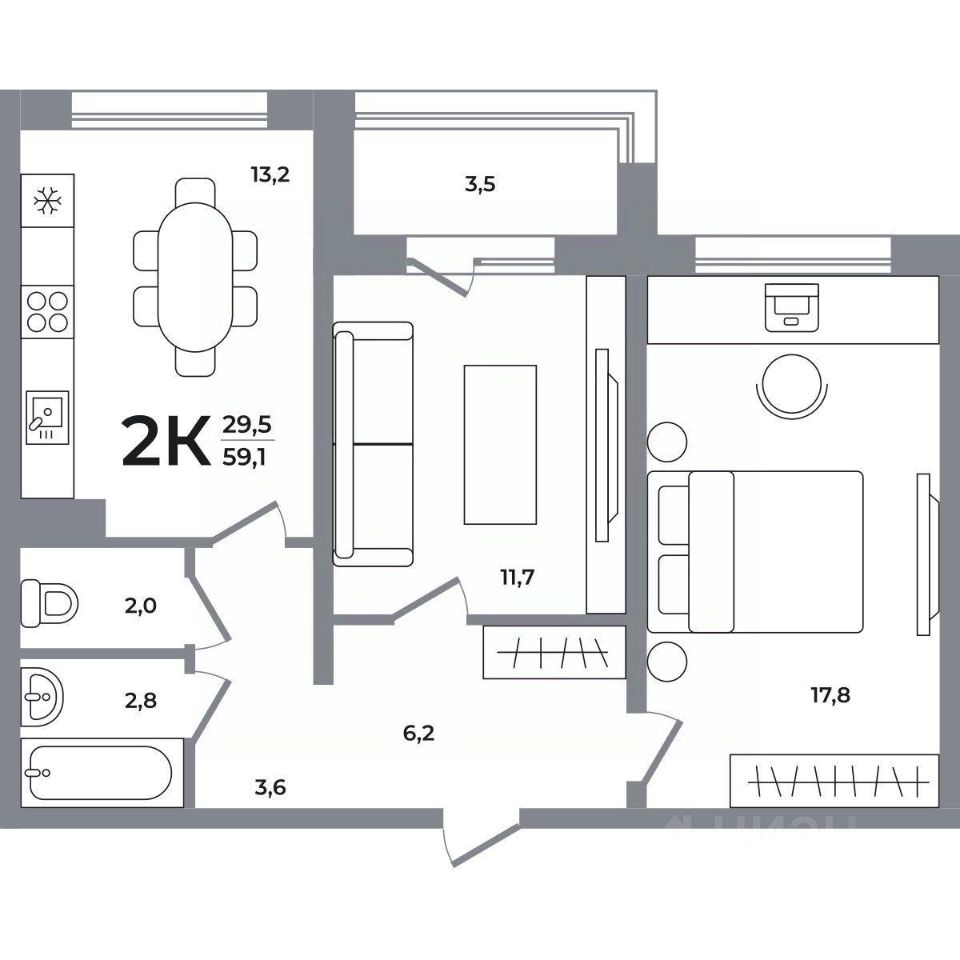 Продаётся 2-комнатная квартира в строящемся доме (Дом 1), срок сдачи: I-кв. 2026, общей площадью 59 кв.м., на 2 этаже. Новый жилой дом от компании "Агросервис" расположен в Кировском районе Новосибирска в границах улиц Беловежская - Сибиряков-Гвардейцев.