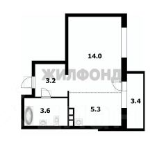 Квартира состоит из жилых комнат 14,0 м2 кухонной зоны 5,3 м2, совмещенного сан.узла 3,6 м2, и остеклённой лоджии.
