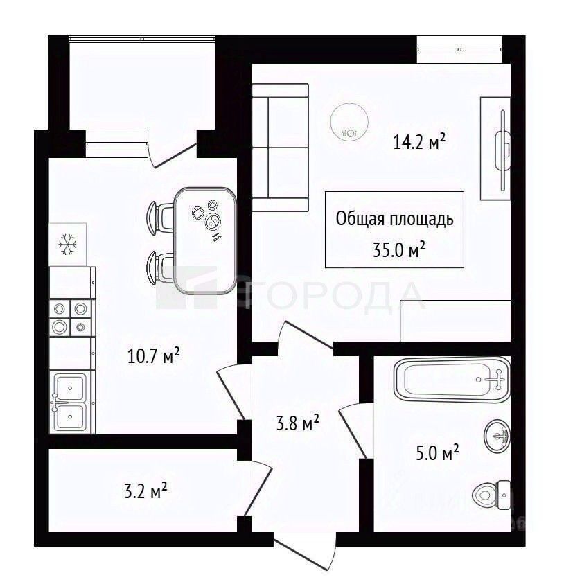В квартире остается кухонный гарнитур, холодильник, раскладной диван, стиральная машинка.