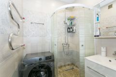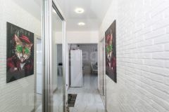 Свежий ремонт. На полу ламинат, в кухне гостиной частично отделано плиткой. Везде натяжные потолки. Сан узел и ванная комната отделана плиткой. Кухонный гарнитур остается новым собственникам в подарок.