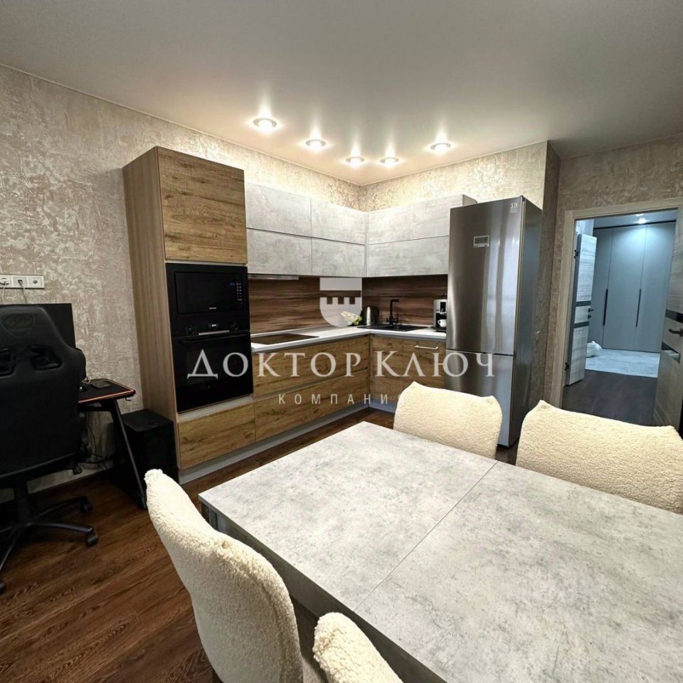 Ремонт выполнен в современном светлом стиле . На полу ламинат, в прихожей и сан узле кафель. Стены оклеены обоями. Кухня полностью укомплектована бытовой техникой, достанется новым счастливым владельцам. Общая площадь указана с учетом лоджии