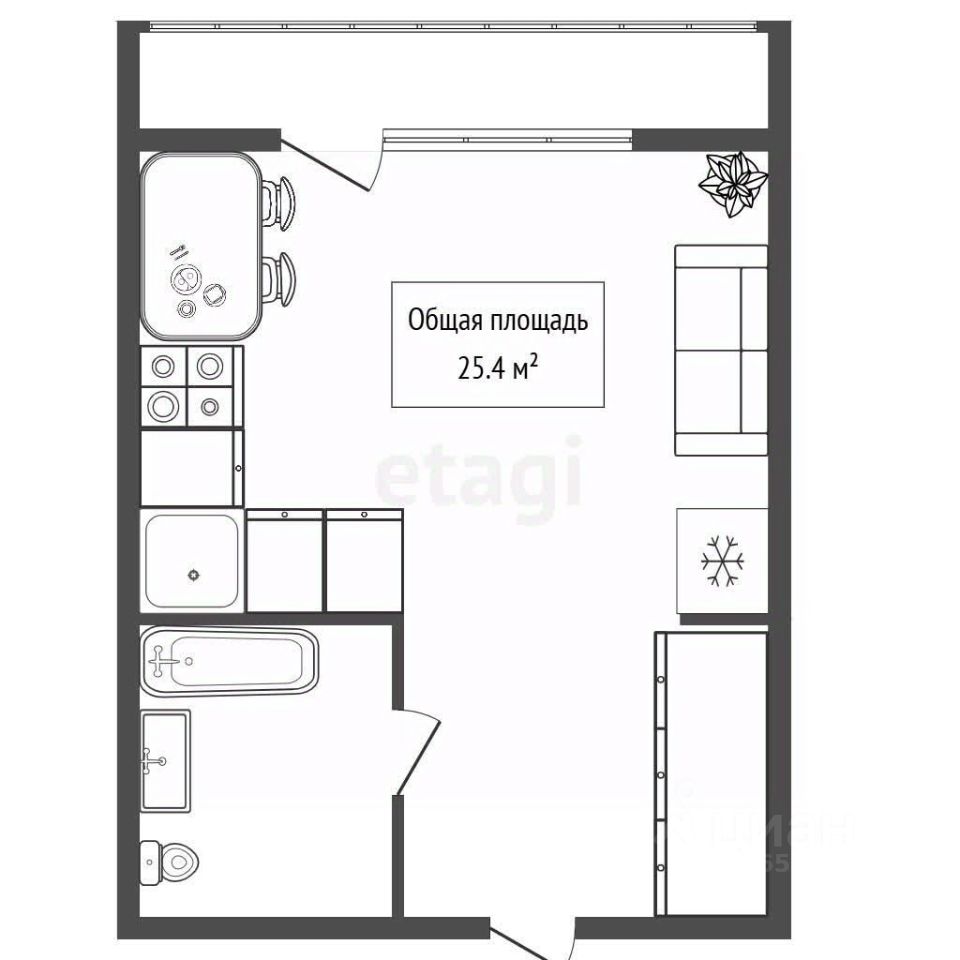 Продается светлая студия общей площадью 25.4 м², на 2-м этаже 17-этажного современного дома.