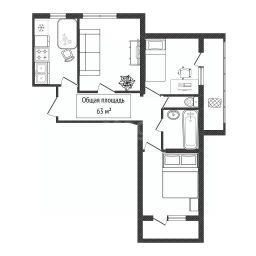 Потолки и стены выравнены, требуется легкий косметический ремонт.