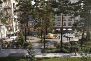 Благодаря разновысотному строительству квартал не доминирует над пространством, а органично вписывается в него.