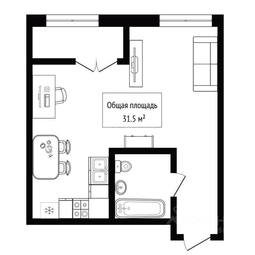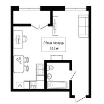 Студия очень функциональной планировки, все вынесено отдельно, жилая зона, отдельно кухонная ниша, так же есть теплый балкон, который можно использовать в качестве кабинета.