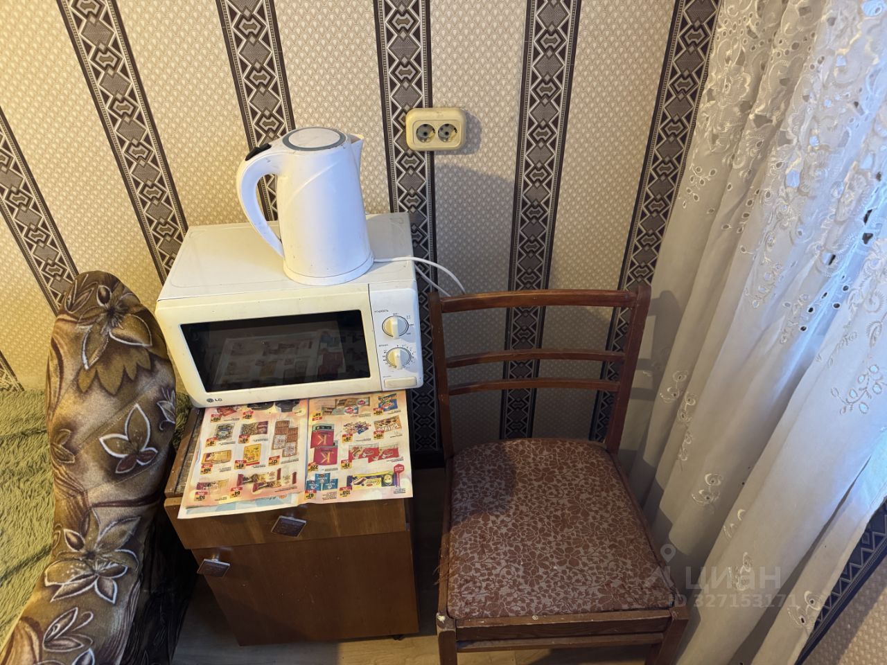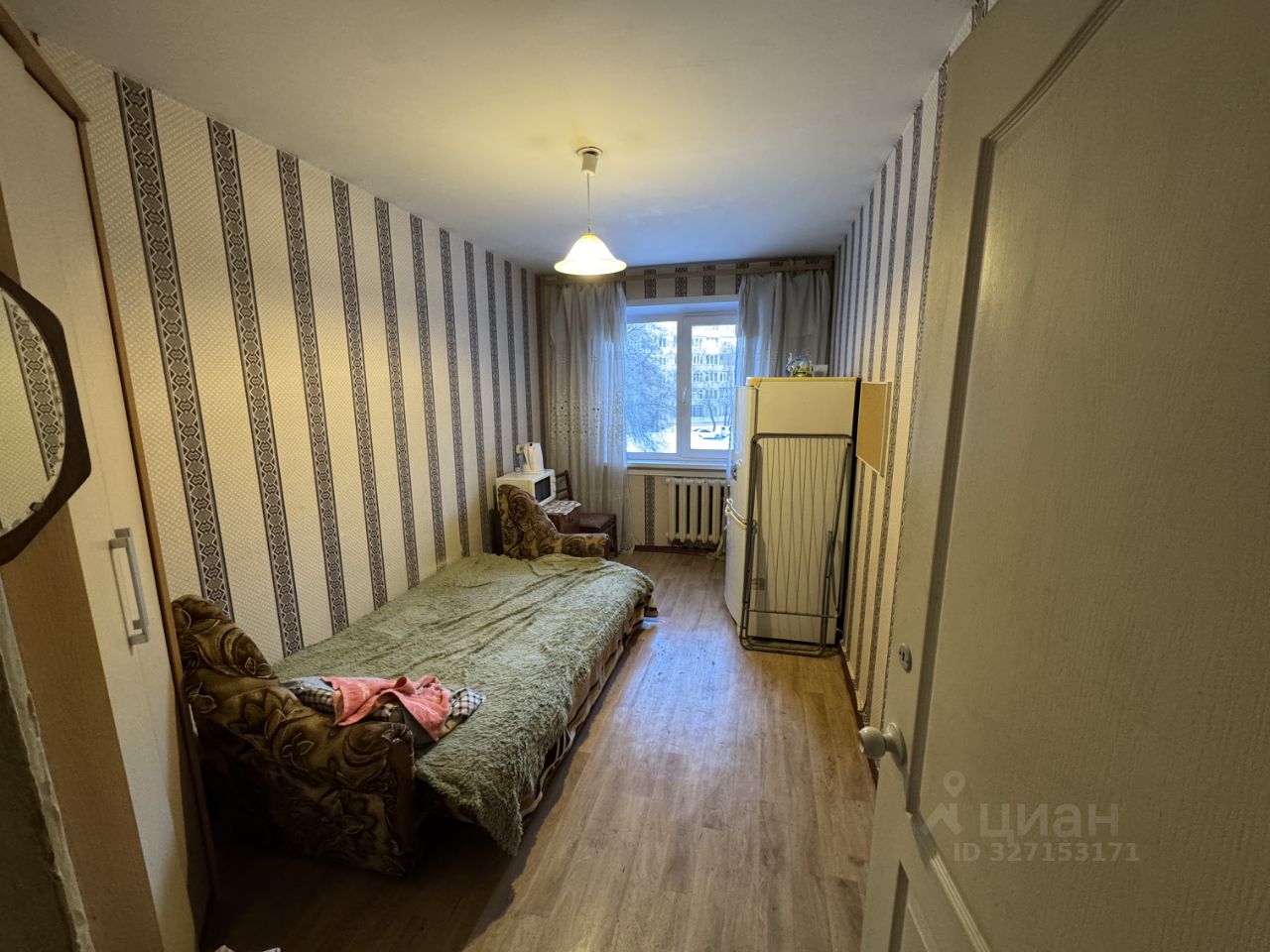 Находится сама квартира в хрущевке, ремонт достаточно старый. Сама комната 10.8 квадратов, раздельный санузел, кухня, кладовка. В самой комнате из проблем есть окно (открывается в одном положении), и конечно же старый ремонт. В квартире, так скажем зале, живет бабушка (она родственница владельца второй доли квартиры). В общем и целом на фото все видно.