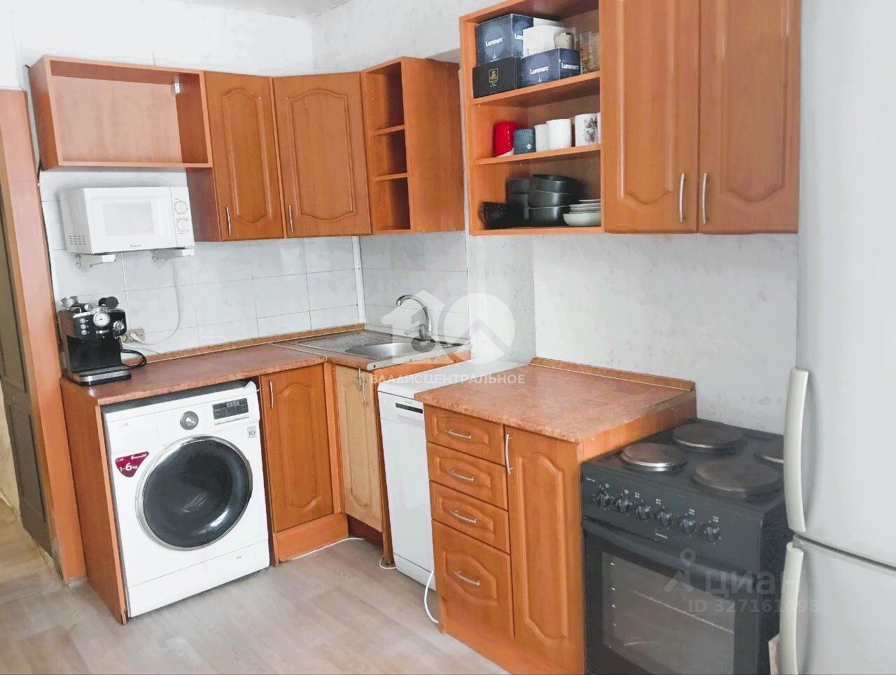 • На кухне: гарнитур, стиральная машина, посудомоечная машина, электропечь, микроволновая печь.